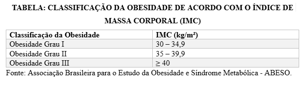 avanços científicos e diretrizes internacionais, visando ampliar o acesso ao procedimento com segurança. Os critérios para indicação da cirurgia mantêm-se para indivíduos com Índice de Massa Corpórea (IMC) superior a 40, independentemente da presença de comorbidades e, para aqueles com IMC entre 35 e 40 quando associados a doenças concomitantes. Ademais, a elegibilidade estende-se a pacientes com IMC entre 30 e 35 que apresentem diabetes mellitus tipo 2, doença cardiovascular grave com lesão em órgão-alvo, doença renal crônica em estágio inicial decorrente do diabetes tipo 2, apneia obstrutiva do sono grave, esteatose hepática não alcoólica com fibrose, condições com indicação para transplante, refluxo gastroesofágico com recomendação cirúrgica ou osteoartrite grave (CFM, 2025).